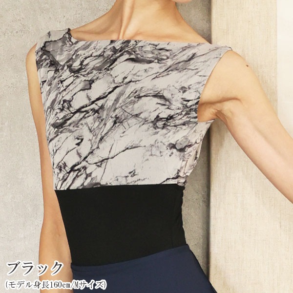 サラカラマーブルストーンメッシュ・ボートネックレオタード