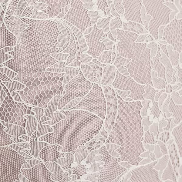 上半身バスト部分は華奢レース、シェヘラザードレースで仕上げ、